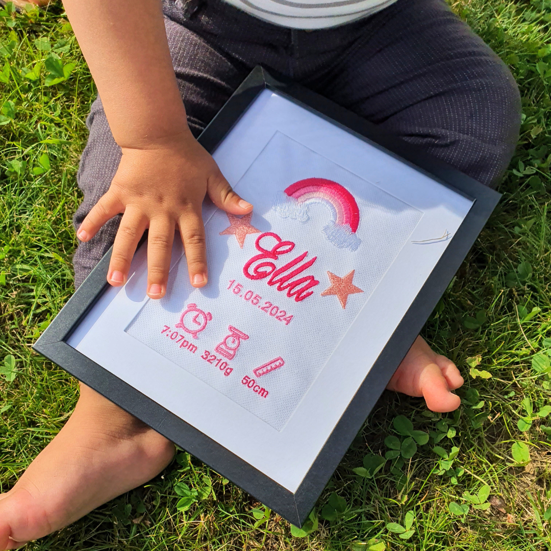 Skapa ett unikt minne för ditt barn eller en älskad familjemedlem med vår Personliga Broderade Poster!