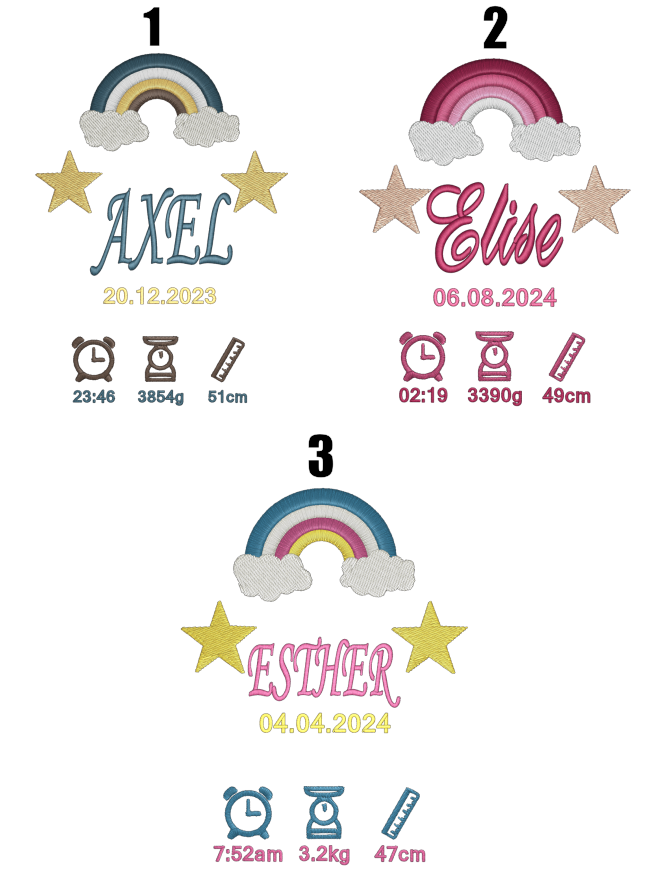 Vår broderade poster är en perfekt och personlig gåva för att fira ankomsten av en nyfödd. Varje poster är noggrant broderad med detaljer som gör den unik för varje barn.