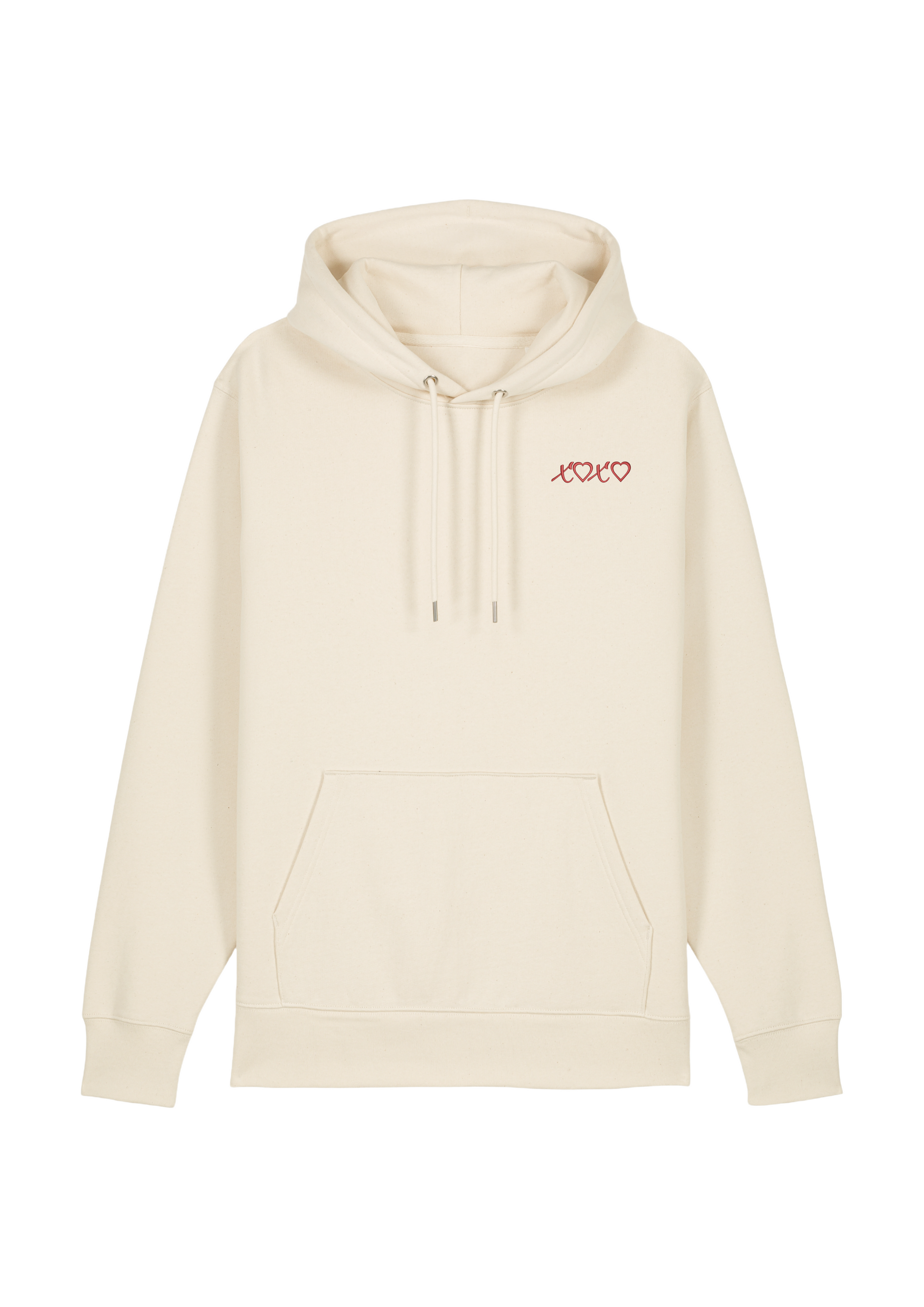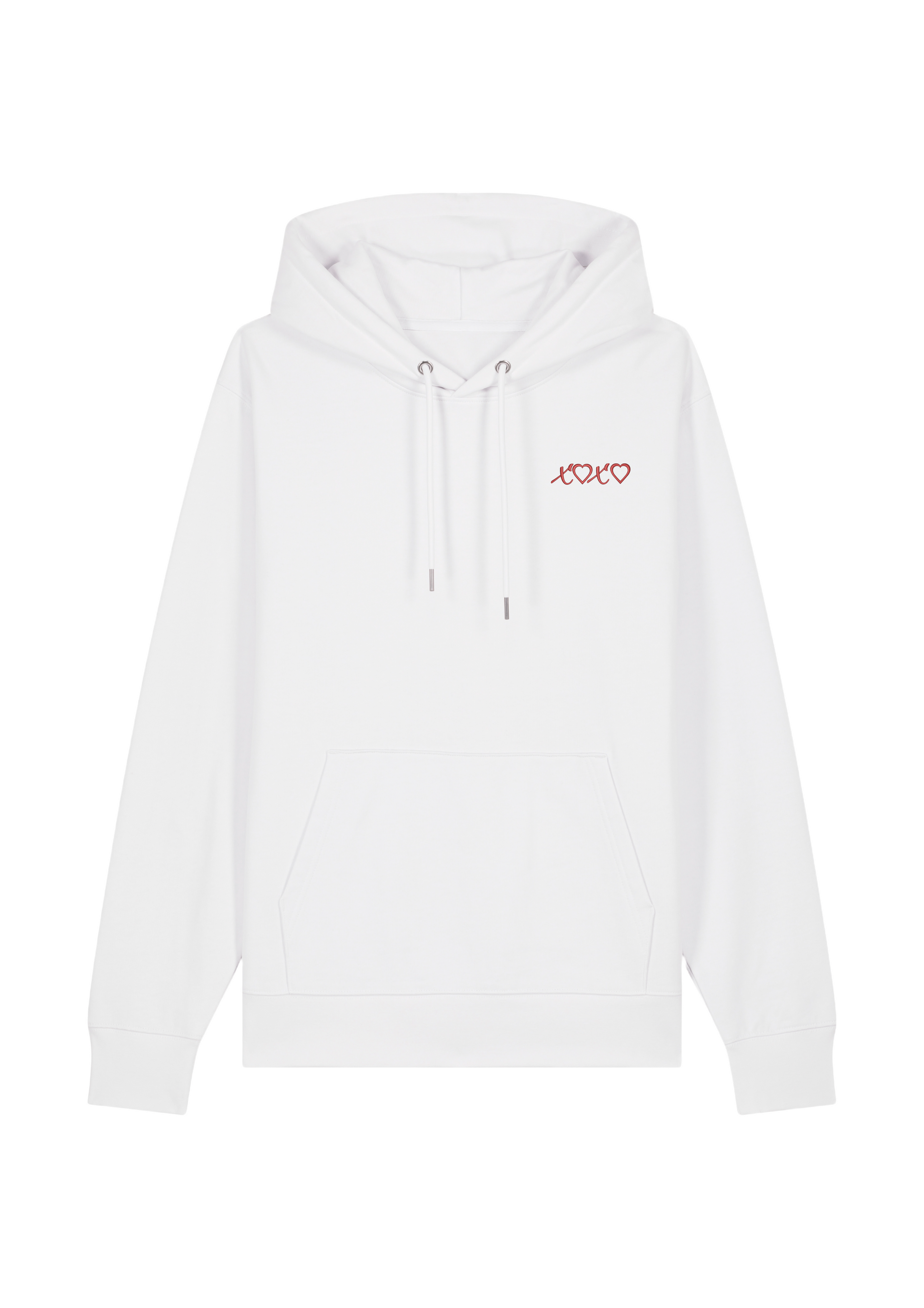 Ge en omtänksam och rolig present till din partner på Alla Hjärtans Dag. Den här hoodien eller sweatern har en broderad design med texten "XOXO"